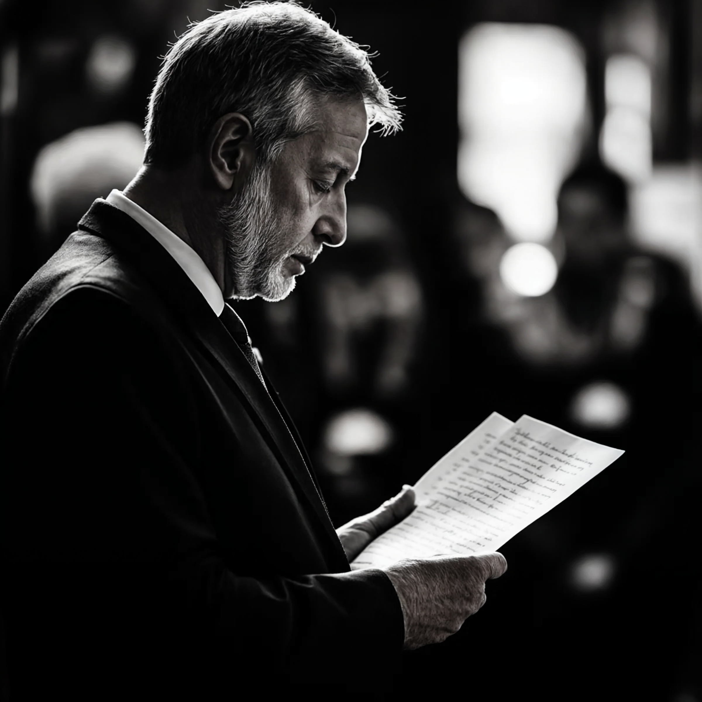 Il se racla la gorge, la pièce devenant complètement silencieuse alors que tout le monde tournait son regard vers lui. Dans sa main, il tenait une lettre.