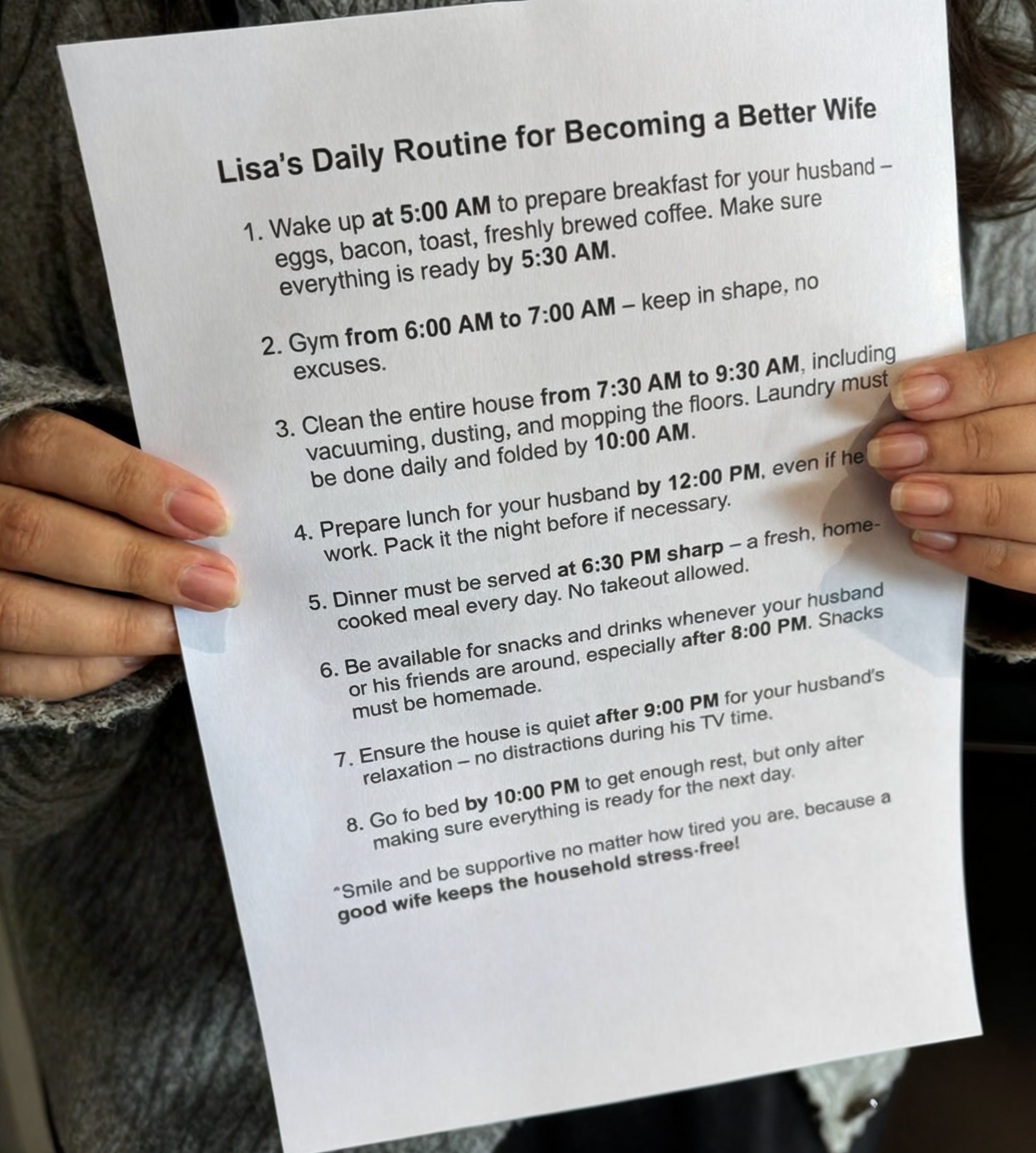 Ce type avait réellement pris le temps de planifier toute ma semaine en fonction de ce que Steve — un célibataire sans expérience relationnelle — pensait que je devrais faire pour “m’améliorer” en tant qu’épouse.