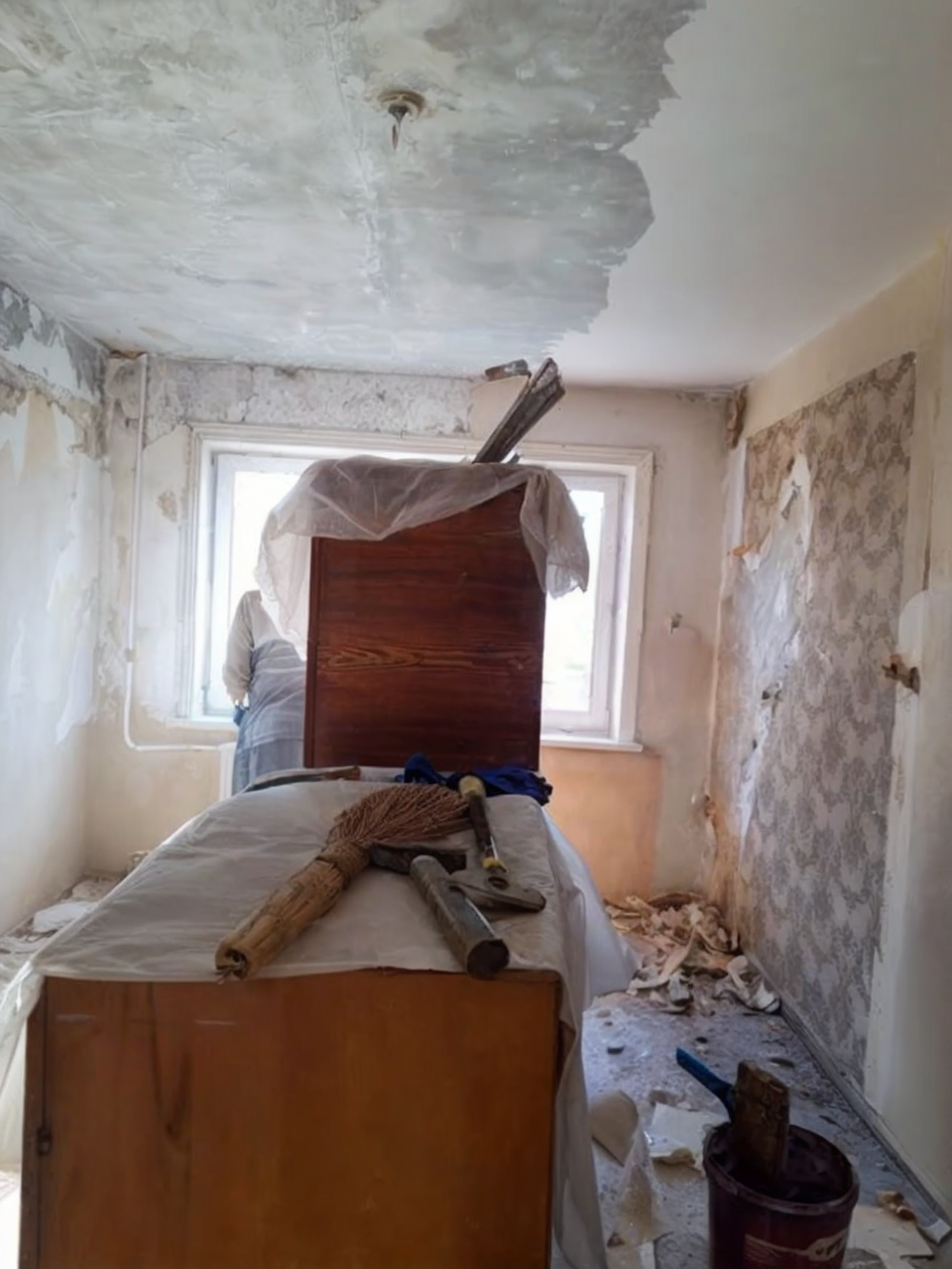 La transformation a commencé par la cuisine, transformée en un lieu lumineux et accueillant, puis la salle de bains a été complètement rénovée. Nous lui avons aussi proposé d’installer de beaux plafonds et un nouveau sol en linoléum, en plus d’acquérir de nouveaux meubles et de remplacer le vieux papier peint qu’elle avait posé avec son époux. Les murs ont été méticuleusement plâtrés et apprêtés.