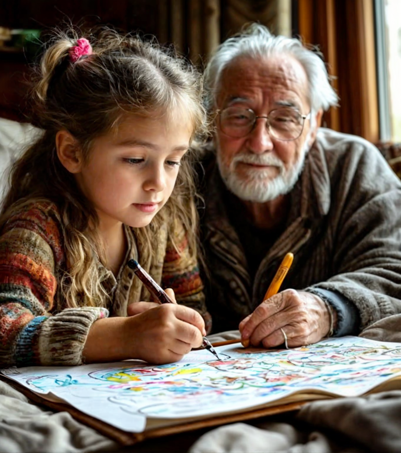 Lena, les yeux écarquillés, écoutait son grand-père.