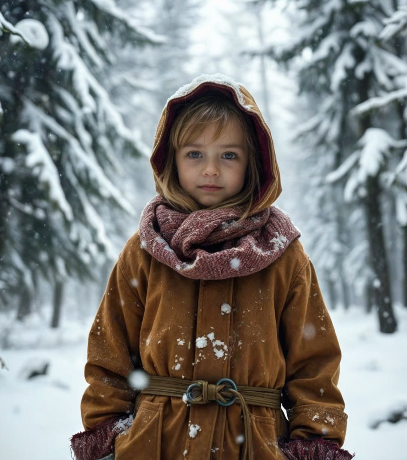 Le gel était si intense que les arbres semblaient sur le point de se fendre sous la tension. C’est exactement cette sensation qui envahit Antonina lorsqu’elle sortit de chez elle pour aller chercher du charbon dans la grange. De retour dans sa chaumière, elle sentit la chaleur se répandre lentement dans son corps et, en regardant par la fenêtre, elle se mit à réfléchir. Soudain, son regard fut attiré par un mouvement : une petite fille, peinant à avancer tant ses jambes étaient faibles, se dirigeait vers sa maison.