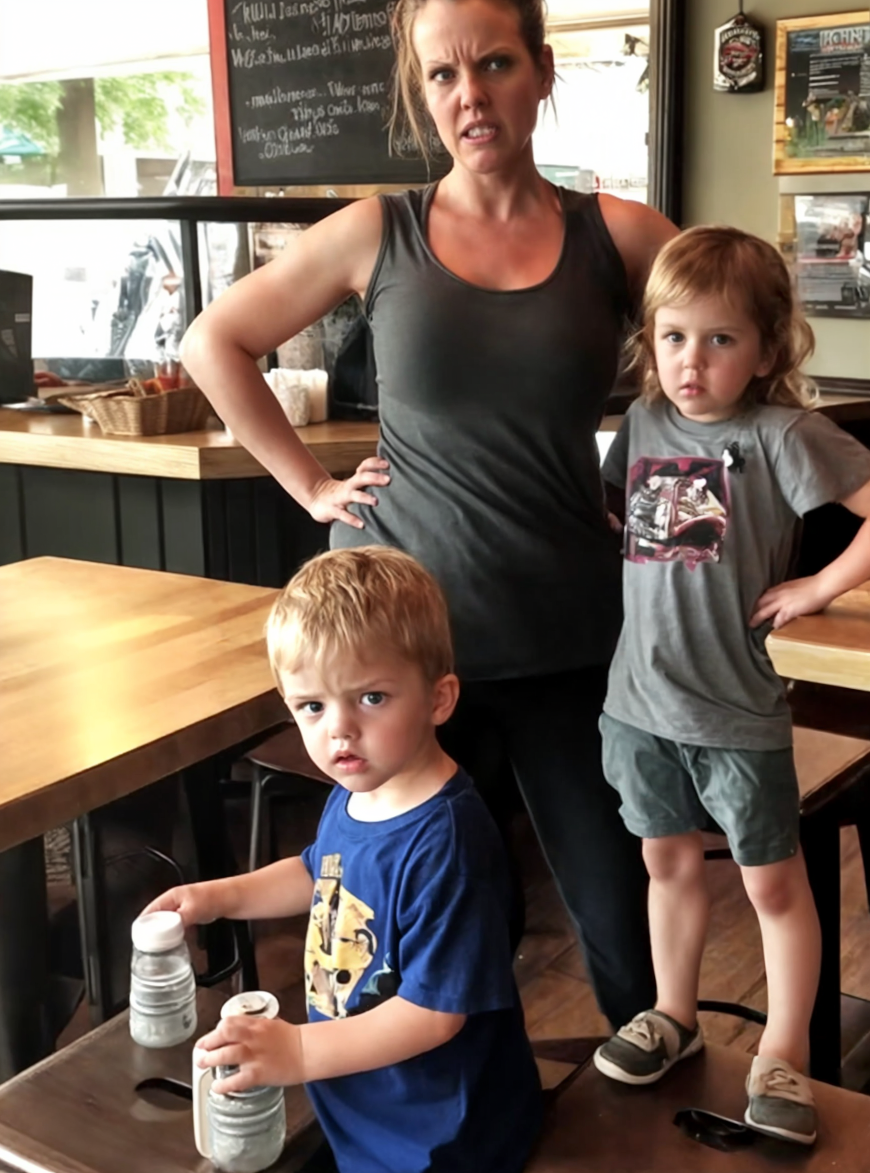 Tandis que Tony s’éloignait en sifflotant gaiement, la femme rassembla ses enfants, marmonnant entre ses dents. Dans sa hâte de partir, elle renversa une chaise, dont le fracas résonna dans le café désormais silencieux.