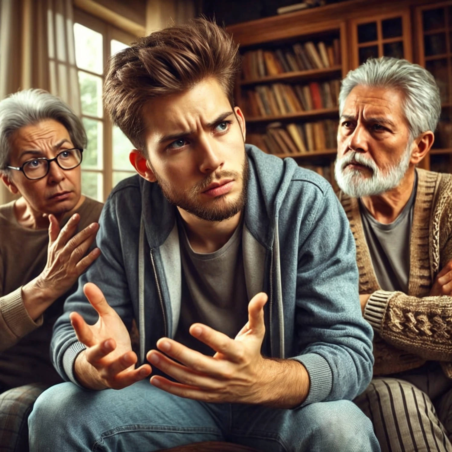 Tous les membres de la famille se réunirent dans son nouvel appartement : ses parents, désormais plus âgés avec le temps écoulé, Gena avec sa femme, silencieux et sur ses gardes. Les jumeaux ne furent pas invités — sans doute pressentant la gravité de la situation.