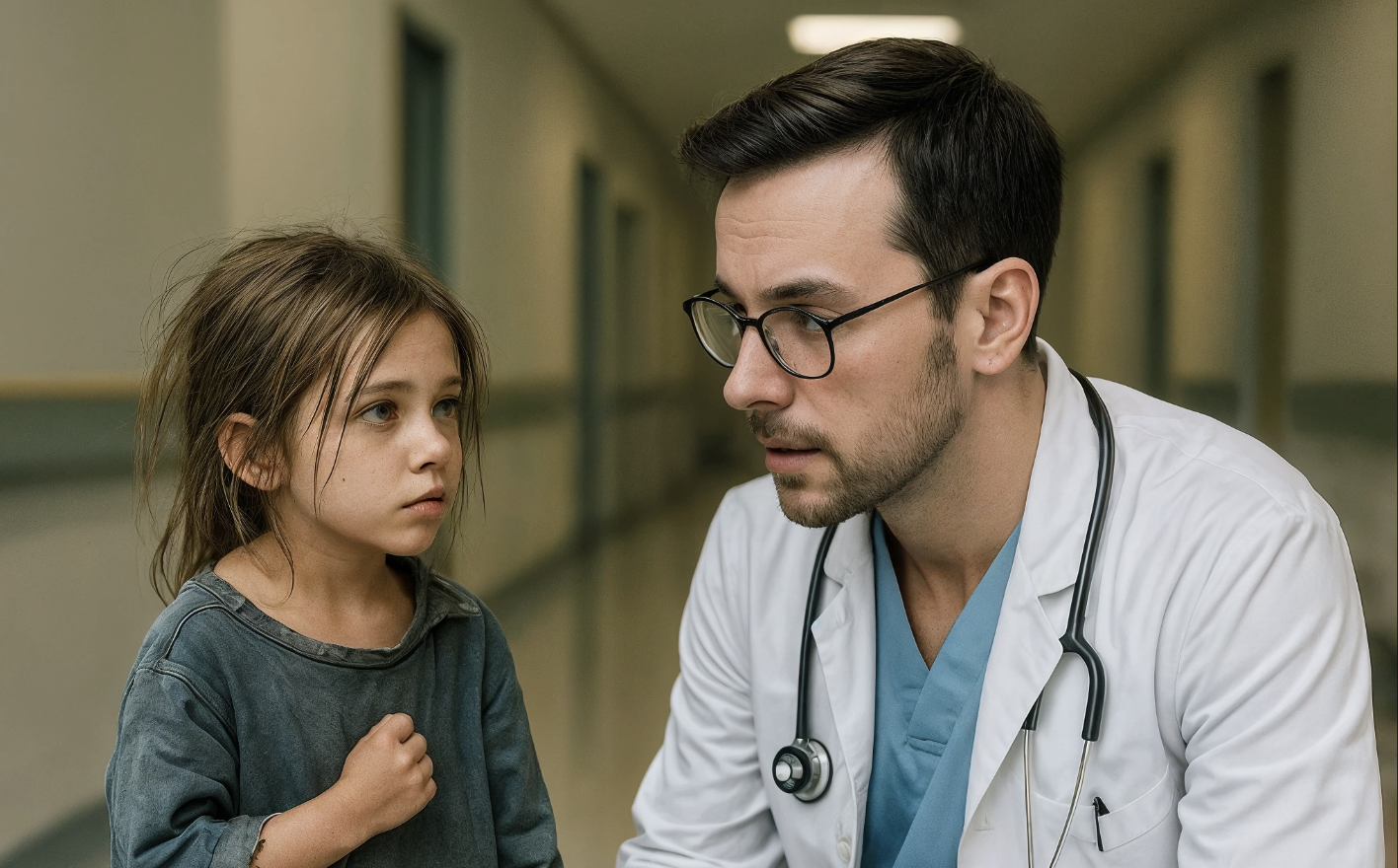 Sous un lampadaire, il aperçut une petite silhouette : une fillette d’environ six ans, en sandales usées et robe trop grande pour elle. Elle s’approcha sans hésiter.