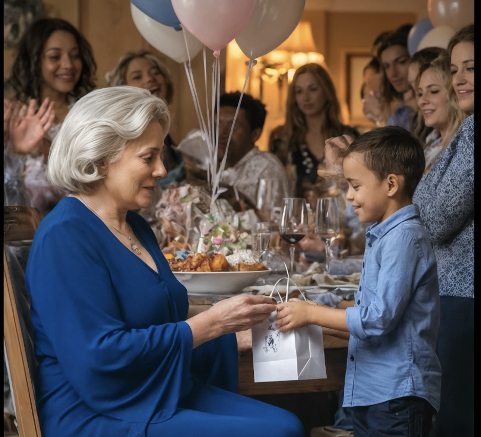 Je suis restée figée. Mon fils, Noah, se tenait quelques pas derrière moi, près du bol à punch, un sac cadeau choisi de ses soins serré contre lui. Il avait tout entendu. Avant que j’aie pu réagir, il s’est avancé, portant ce sac droit en direction de ma belle‑mère.