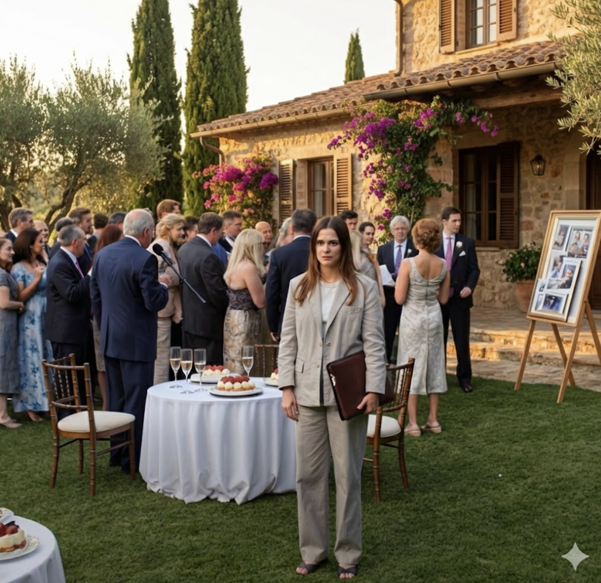 Je me trouvais près du fond du jardin, encore en blazer anthracite et pantalon de travail. Je venais tout droit d’une garde de douze heures dans une salle serveurs, cheveux tirés en chignon pratique, badge de sécurité — un rectangle dur et froid — dans la poche. Je sentis les regards d’une centaine de personnes — tantes, oncles, cousins au troisième degré, associés d’affaires — pivoter vers moi comme des projecteurs.