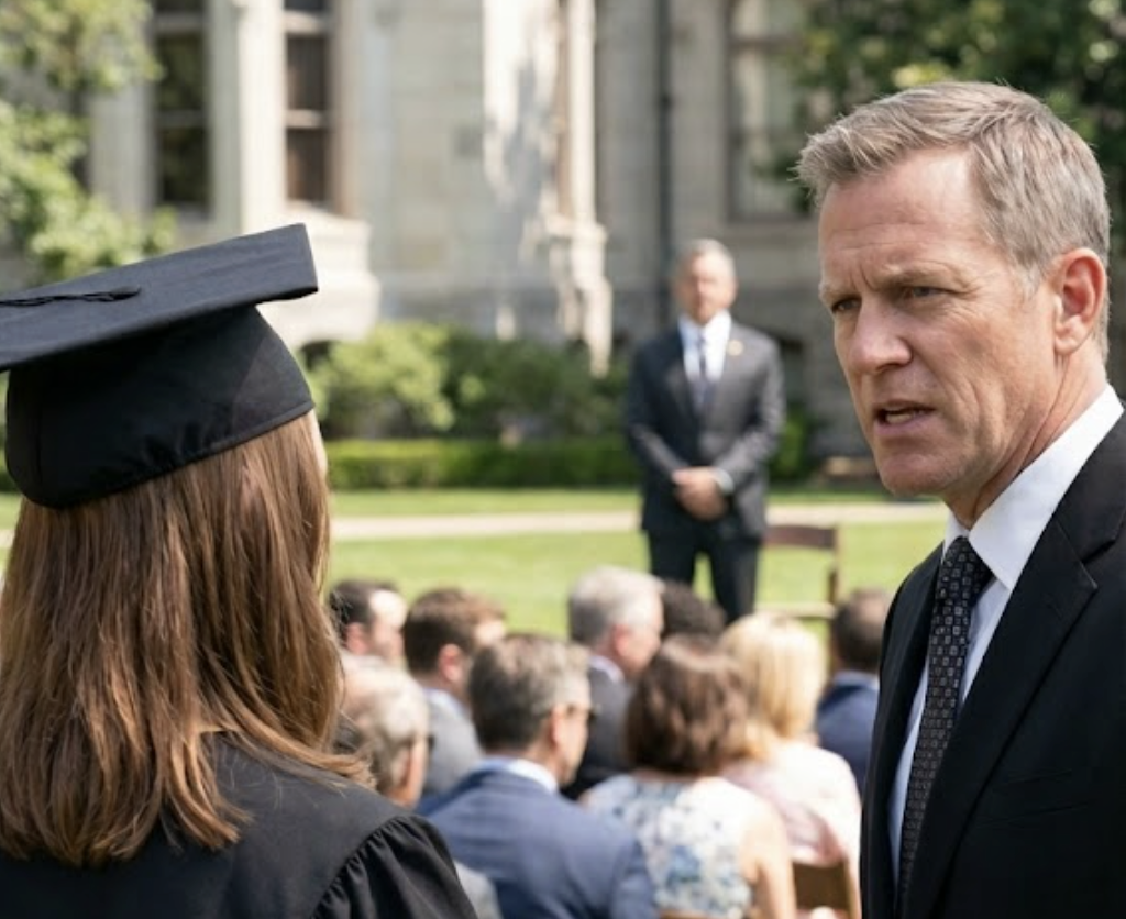 Ma mère a brusquement tourné la tête vers lui, la bouche entrouverte comme si elle avait oublié comment parler. Je suis restée figée près des marches, mon dossier de diplôme serré contre ma poitrine.