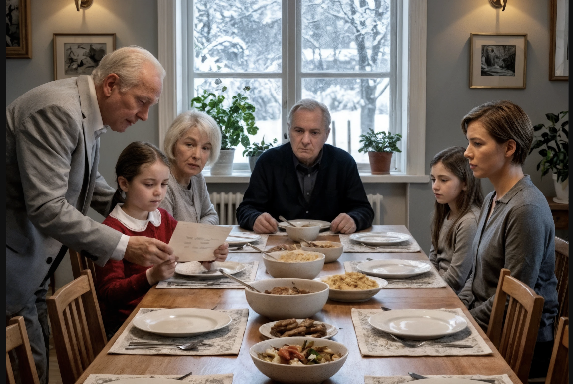 La pièce ne se contenta pas de se taire ; elle devint un vide. Quatorze fourchettes frappèrent les assiettes à l’unisson. Mon père posa son couteau à découper avec un clic lent et délibéré. Il se leva, son ombre planant au-dessus de ma fille.